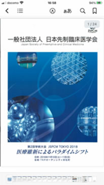 2018年11月10日~11日に開催された日本先制臨床医学会・第2回学術大会「医療維新によるパラダイムシフト」において、福沢嘉孝先生(一般社団法人日本先制臨床医学会 理事長、愛知医科大学病院 先制・統合医療包括センター 教授)が「リキッドバイオプシーによる”未病の見える化”」について講演を行われました。