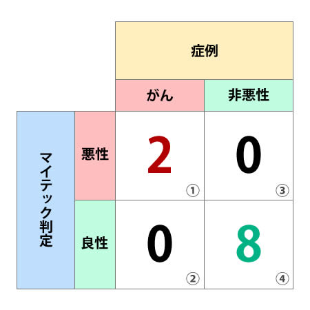 会員制人間ドックは定期的な追跡が可能なため、ブラインド試験後に5年間の追跡調査を行い、確定診断と照し合せを行うことで極めて正確な臨床試験結果が得られました。(全95検体)